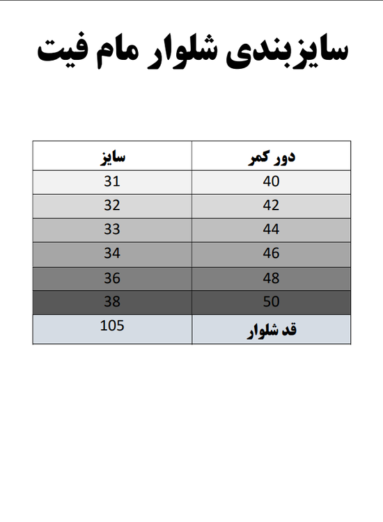 ویژگی شلوارمام فیت: فاق بلند و ازاد هستند ، از کمر تا ران پا ازاد و در ساق پا شلوار تنگ تر می شود